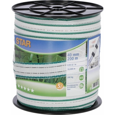 Ohradníková páska 40 mm 200 m STAR bílá/zelená Optimalizujte bezpečnost vaší ohrady s naší ohradníkovou páskou. Díky použití silných PE vláken nabízí naše páska výjimečnou...