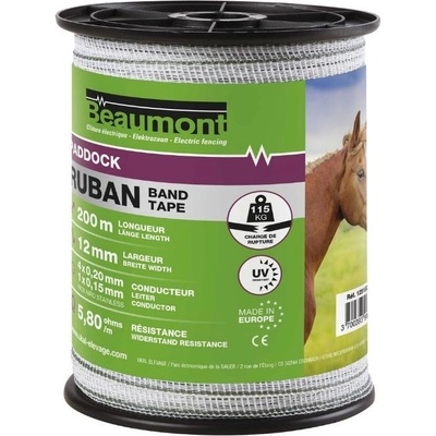 Ohradníková páska BEAUMONT bílá/zelená 12mm Ohradníková páska Specifikace produktu - páska určená k použití s izolátory a zdrojem energie - šířka 12 mm - délka 200 m -...
