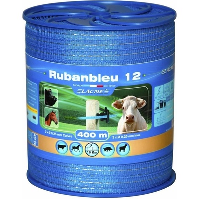 Ohradníková páska RUBAN BLEU 12 mm Určeno pro skot, koně a ovce. Parametry - Šířka: 12 mm - Vodiče: 2 x 0,25 mm Cu + 3 x 0,25 mm nerez - Napětí: 15 000 V - Pevnost v tahu:...