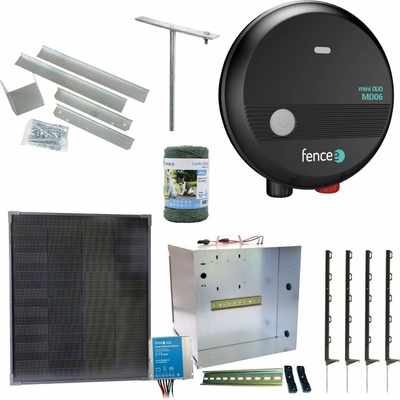 Solární systém pro elektrický ohradník. Vhodné pro kombinované generátory fencee s výkonem nad 7 J. Obsahuje kompletní bezpečnostní schránku na zdroj ohrady/baterii...