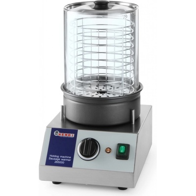 Ohřívač párků CS 0 E od francouzského výrobce ROLLER GRILL. nádoba na ohřev párků tvořená válcem o průměru 200 mm, výšce 240 mm z tvrzeného Pyrex skla a miskou s teflonovým povrchem na vodu ve válci je vložen dělený košík pro oddělení již ohřátých párků od ještě...