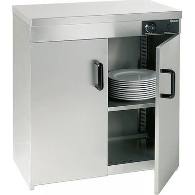 Kryt, police a topná tělesa jsou vyrobeny z nerezové oceli. Pro cca 108 ks ø24 cm talířů (64 - ø33 cm).* Včetně 3 odnímatelných, nenastavitelných polic na talíře: s výškou 10 mm...