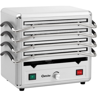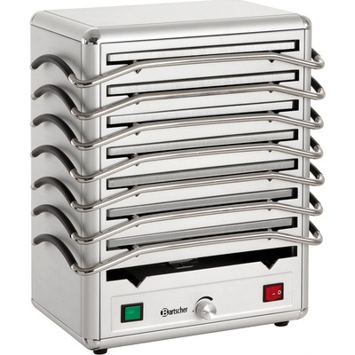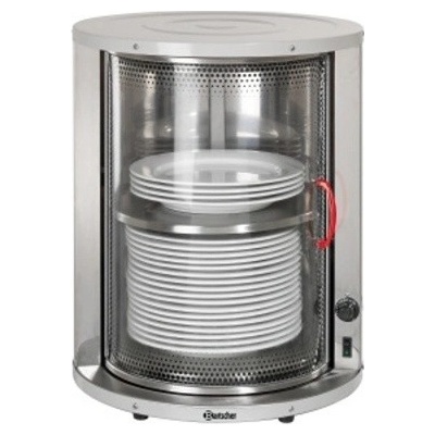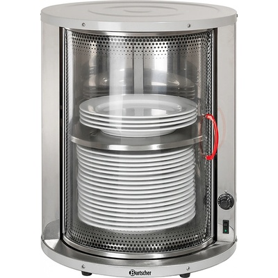 Stolní ohřívač Bartcher s kapacitou 30 - 40 talířů o průměru 32 cm. Stolní nerezové provedení s pevnou policí, otočný skleněný kryt. Kapacita: 30-40 talířů (do 32 cm) Nastavení teploty 30 - 80 °C. Vnitřní rozměry: dolní průměr 330 mm x výška 440 mm (215 mm spodní/225...