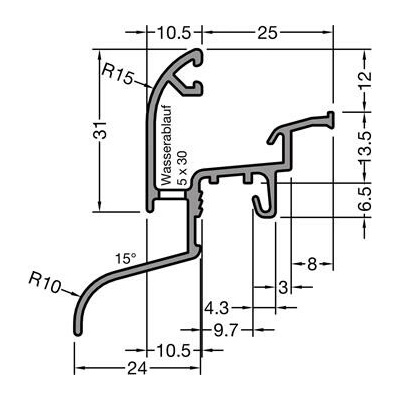 Použití pro falc 22 mm Speciální velkoobjemový profil bez těsnění a přesahem přes rám. Zmenšená plocha dotyku s těsněním a větší prostor pro kondenzaci par. F - upevnění...