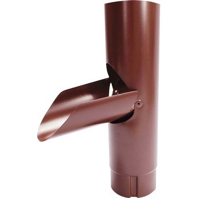 Odvaděč vody pro okapové svody o průměru 80 mm. Může být používán např. jako odbočka do sudu apod. Materiál: lakovaná pozinkovaná ocel. Hnědá.