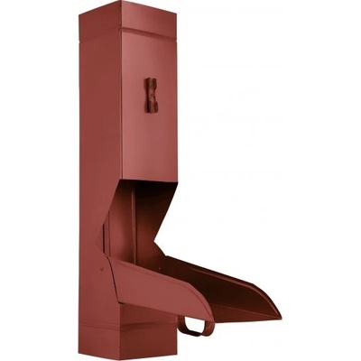 Odvaděč vody pro okapové svody o průměru 100 mm. Může být používán např. jako odbočka do sudu apod. Materiál: lakovaná pozinkovaná ocel. Cihlově červená.