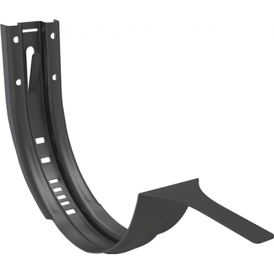 Žlabový hák čelní pro půlkruhový okapový žlab rozvinuté šířky 280 mm (odpovídá průměru žlabu 125 mm). Materiál: lakovaná pozinkovaná ocel. Antracitová.