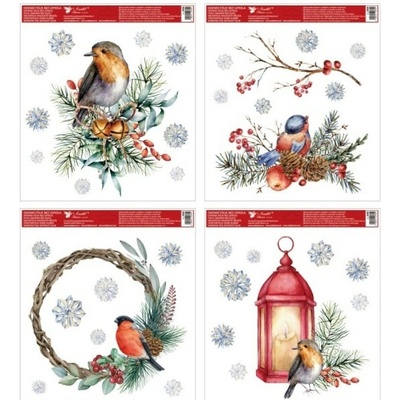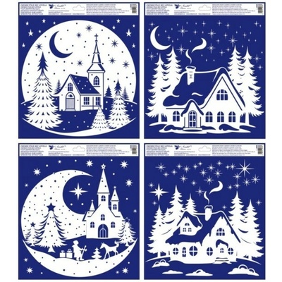 Fólie okenní rohová s glitrem o rozměru 38 x 30 cm s motivy zimní krajiny. Fólie neobsahuje lepidlo. Snadno elektrostaticky přilne na čistém okně, zrcadle apod. Mix motivů:...
