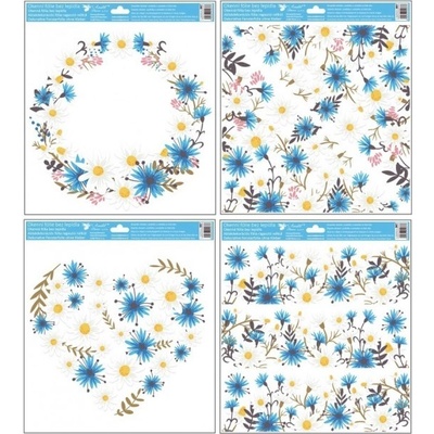 Okenní fólie s glitry - Kytky 33 x 30 cm 987 Okenní dekorační fólie bez lepení Různé druhy. Motivy se často mění, zboží bude dodáváno dle aktuálních skladových zásob