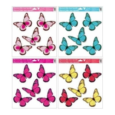 Okenní fólie 33 x 30cm - motýli s glitry/mix motivů