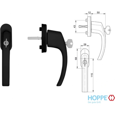 Hoppe Uzamykatelná okenní klika Blaugelb Barva: Černá - RAL 9005, Délka čtyřhranu: 43 mm