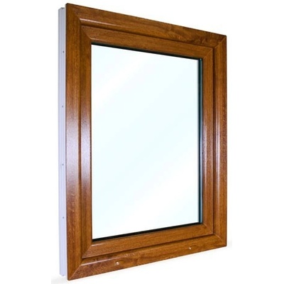 Jednokřídlé plastové okno 80x100 cm v bílé barvě z interiéru a v dekoru zlatý dub z exteriéru. Okno je ve verzi s pravým otevíráním tzn. panty jsou umístěny na pravé straně...