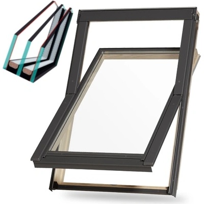 Doprava ZDARMA Kyvné dřevěné střešní okno s ventilační klapkou - energoúsporné trojsklo FAKRO FTP-V U5 06 78x118 Barva venkovního oplechování - stínová šedá RAL...