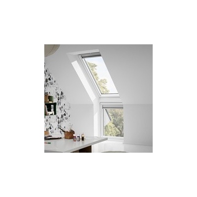 Poplastované dřevěné kyvné střešní okno Velux GLU CK04 0061 s energeticky úsporným trojsklem Uw 1,1 integrovanou ventilací speciálním těsněním a filtrem proti prachu a...