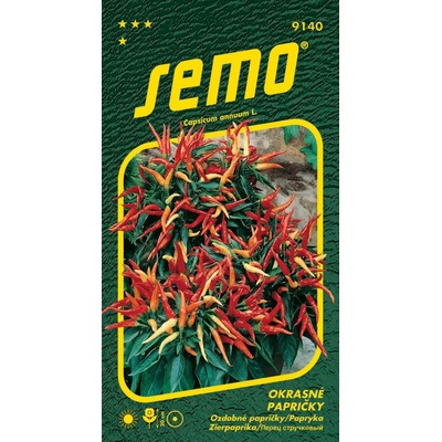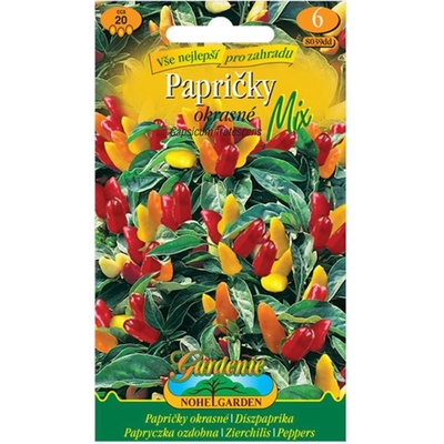 Papričky okrasné směs - jednoletá nízká paprička se štíhlými, vzpřímenými plody ve žluté, oranžové a červené barvě dorůstá do výšky pouze 20 cm. Rostliny nesou svazek štíhlých, vzpřímených plodů, které se vyvíjí nad úrovní listů, díky čemuž působí velmi dekorativně....