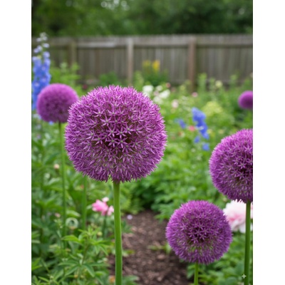Česnek okrasný "Purple Sensation" je vysoký druh česneku s purpurovou hlavičkou. Dorůstá do výšky kolem 80 cm. Jeho obrovské květy fialové barvy mají v průměru 15 cm a jsou...