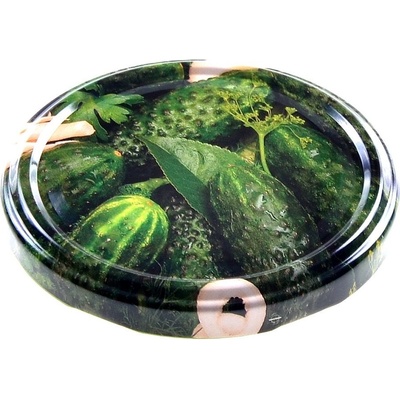 \n\nmateriál kov s dekorem okurky \nzavařovací víčko na závitové sklenice (Twist) o průměru hrdla 82 mm, pro zavařování do 100°C \ncena za balení 10ks \nčeský výrobce \nEAN...