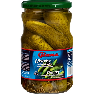 Okurky ve sladkokyselém kořeněném nálevu s cukremHmotnost: 680 gHmotnost pevného podílu: 340 gSložení: okurky, pitná voda, ocet, cukr, jedlá sůl, pepř (hořčičná semínka),...