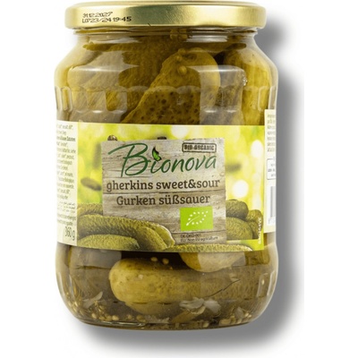 Popis O značce Složení FAQs Podobné produkty PROČ KOUPIT Okurky od Bionova ve sladkokyselém nálevu jsou ideální volbou pro milovníky kvalitních sterilizovaných okurek....