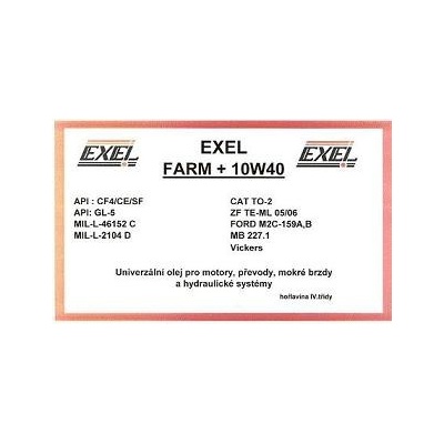 EXEL FARM+10W40 je vysoce výkonný univerzální olej řady STOU, vhodný pro motory, převody, mokré brzdy a hydraulické systémy. Použití jako motorový olej, převodový olej,...