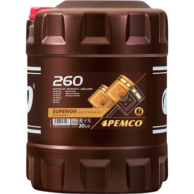 PEMCO 260 10W-40 A3/B4 20 l PEMCO 260 10W-40 A3/B4 20 l PEMCO 260 je polosyntetický motorový olej pro moderní osobní automobily s motorem spalující benzín, naftu, nebo zemní...