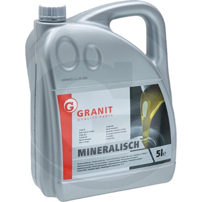 GRANIT Olej 2T minerální 5L Minerální červený olej s označením 2T Vhodný pro smíšené i oddělené mazání dvoutaktních motorů Olej doporučujeme pro starší typy motorů Moderní...