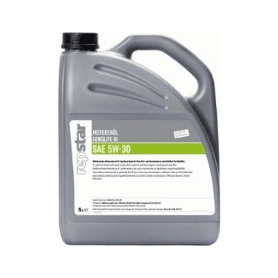 **Polosyntetický **motorový olej REPSTAR LL III. Balení 5 litrů. **Specifikace**: *22951, 2205000, ACEAC3, ACEAA3B404, APISNCF, APISNCFLL3, BMWLONGLIFE04, C30LL3, LONGLIFE04LL3,...