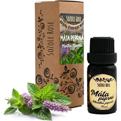 Esenciální olej Máta peprná Venoc 10ml Mátový esenciální olej se získává destilací listů a květů máty peprné, což je hybridní rostlina vzniklá zkřížením máty vodní (Mentha...