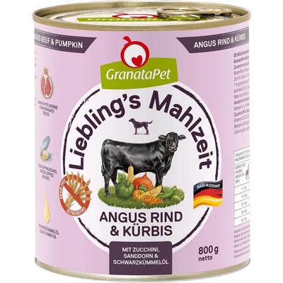 Základní krmivo pro dospělé psy od firmy GranataPet, hovězí z plemene Angus, dýně, cuketa, rakytník a olej z černého kmínu.