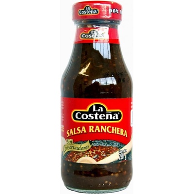 Salsa Ranchera. Salsa Ranchera z La Costena je mírně pálivá a má výraznou chuť. Salsa Ranchera znamená doslova mexická omáčka na ranči. Složení: Tomatillos, směs papriček,...