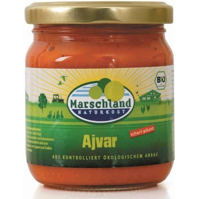 Ajvar pikantní Složení: červená paprika*, pečená červená paprika*, pálivá paprika*, pečený lilek*, olivový olej*, jablečná šťáva z koncentrátu*, česnek*, mořská sůl, ocet*,...