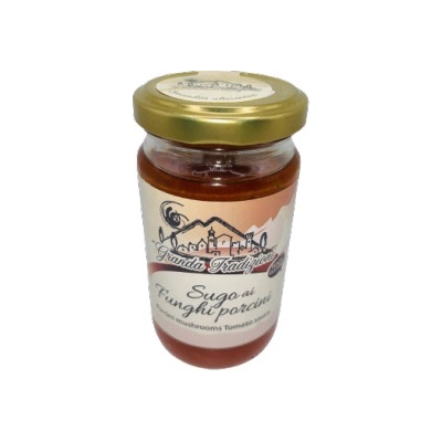 Sugo ai Funghi porcini Rajčatová omáčka s houbami Složení: italská rajčatová dřeň 52%, rajčatový pyré 17%, rajčatový koncentrát 14%, olivový olej, sušené houby (hřib smrkový...