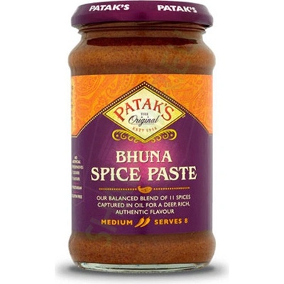 Patak's Bhuna Spice Paste je koncentrovaná směs koření připravená k okamžitému použití, která dodá vašim jídlům bohatou chuť bhuna kari