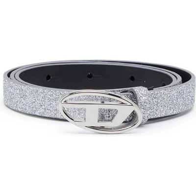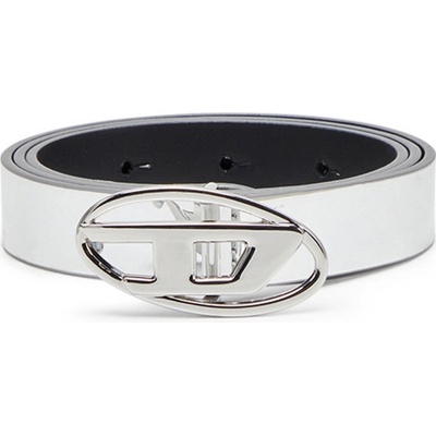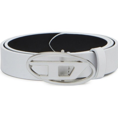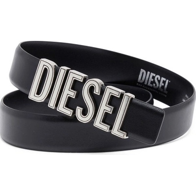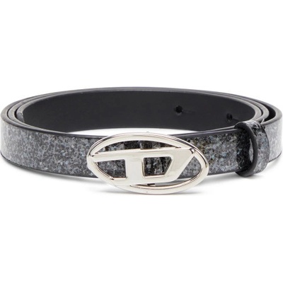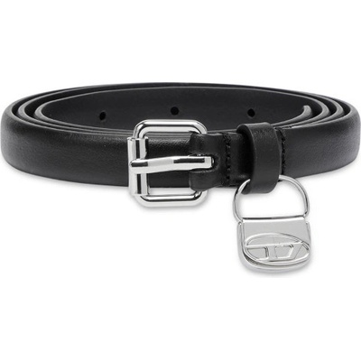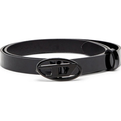 Dámský oboustranný opasek s ikonickým logem. Oválné logo Diesel ve tvaru písmene ,,D" slouží jako dekorativní i funkční spona na tomto pásku B-1dr. Je vyroben z černé telecí...