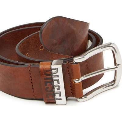 Kožený opasek s ikonickým logem. Tento opasek je vyroben z upravené hovězí kůže se strukturovaným povrchem. Originálně zdoben kontrastním kovovým logem Diesel Industry na konci...