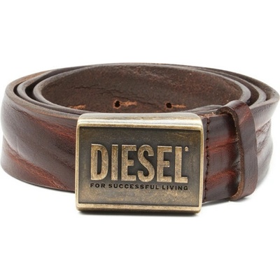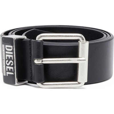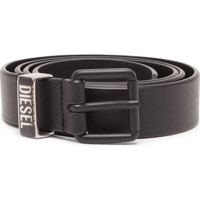 Unisex pásek. Vyroben z pevné strukturované kůže. Zdoben leskle smaltovanou hranatou sponou s logem nápisu Diesel. Zapínání na přezku.