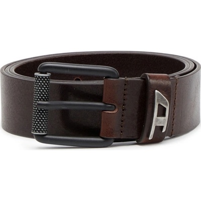 Kožený opasek s ikonickým logem. Tento opasek je vyroben z upravené hovězí kůže se strukturovaným povrchem. Originálně zdoben kontrastním kovovým logem Diesel Industry na konci délky popruhu. Klasická špendlíková přezka dodává nadčasovost. Přezka neobsahuje Nikl.