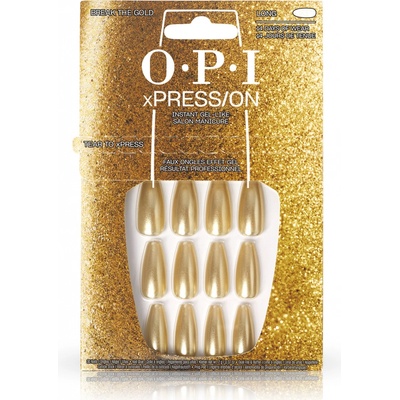 Press-on dlouhé nehty ve zlaté barvě. Se zúženým tvarem a zarovnanou hranou. Jsou opakovaně použitelné a vydrží až 14 dní.