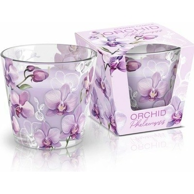 (BAL:12ks) Svíčka v kónickém skle, orchidej.Vůně: vonná kompozice tónů hrušek, lesních ostružin a sladké borůvky, která se uvolňuje do zářivé frézie, jemné pivoňky a exotické...