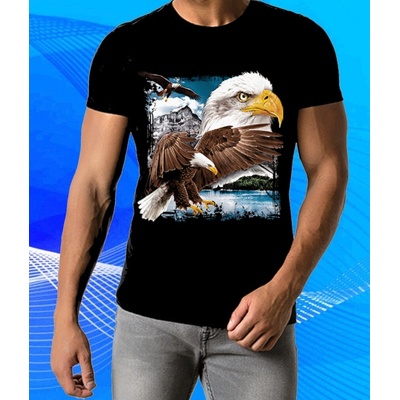 Módní stylový design s orlem bělohlavým a potrhanou americkou vlajkou s částicemi rozesetými po prostoru. Unisex motiv pro muže i ženy i děti. Preferovaným odstínem látky je...