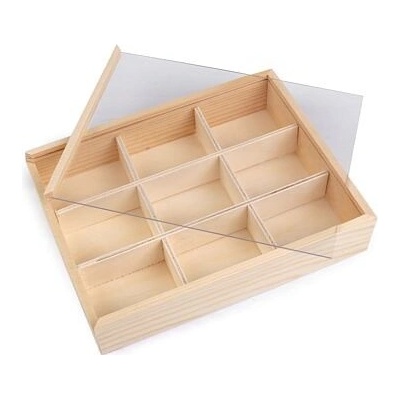 Dřevěný box (organizér) s posuvným průhledným víkem do kterého můžete uložit drobnou galanterii pro šití a kreativní tvoření. Organizér je ideální na knoflíky, korálky a jiné. Přihrádky v organizéru se dají vyjmout a velkou výhodou je i průhledné víko. Tento dřevěný...