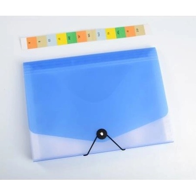 Organizér dokumentů DL, 13 vnitřních přihrádek, včetně popisů. - roztažitelná horní část - uzavírání pomocí gumičky a knoflíku - extra silný materiál PP - tloušťka obal 700...