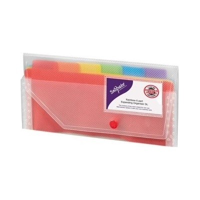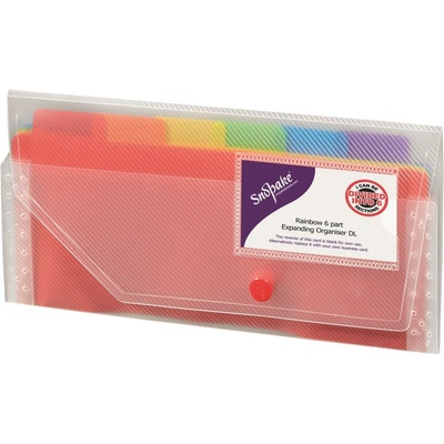 Desky s přihrádkami Snopake - Rainbow ve formátu DL, přehledný organizér na dokumenty rozdělený 6 barevnými přihrádkami se záložkou Kapsa na vizitku na přední straně Zavírání na...