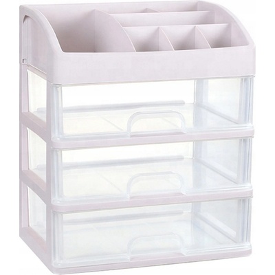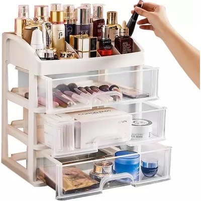 Velký organizér na kosmetiku je vyrobený z čirého pevného plastu. Obsahuje 3 zásuvky a horní úložný prostor - ideální pro skladování veškeré kosmetiky.