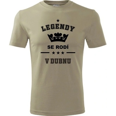 Khaki tričko Legendy se rodí v dubnu. nabízené velikosti jsou S,M,L,XL,XXL,XXXL. Tričko je zařazeno v sekcích Dárek pro švagra, Dárek pro muže k 46, Dárek pro muže k 81, Dárek...