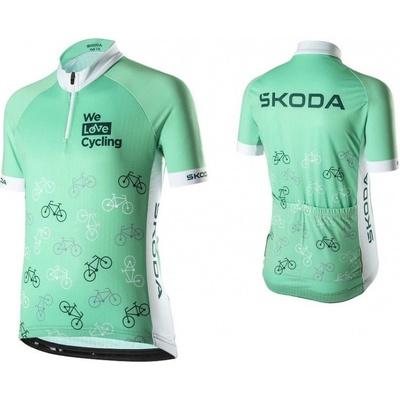 Dětský cyklistický dres v novém designu Škoda v kombinaci barev electric a emerald je vyrobený z recyklovaných materiálů. Na dresu je tištěn dětský motiv kol. Poloviční zip...