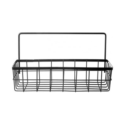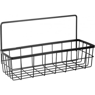Stylový kovový závěsný košík na kořenky z kolekce RADKA v černé barvě, který lze po zavěšení na využít k uložení kořenek, dóz s dochucovadly, květináčů s bylinkami nebo sešitů s...