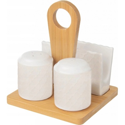 Kvalitní porcelánová menážka se stojánkem z bambusového dřeva je určená na sůl, pepř a ubrousky. Dochucovací souprava Orion WHITELINE se snadno přenáší, můžete ji tak mít po...