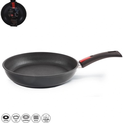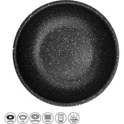 hliníková, granitová, kulatá, vhodná pro elektrickou, plynovou, sklokeramickou i indukční varnou desku, možnost použití neostrého kovového náčiní, možnost mytí v myčce a nepřilnavý povrch, hliníkový vnější povrch, ergonomická, plastová rukojeť, dvojité dno, rozměry 8,5...