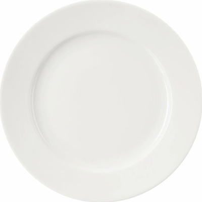 Mělký porcelánový talíř kulatého tvaru. Materiál: porcelán. Rozměry: pr. 27 cm, v. 2,5 cm. Lze mýt v myčce i použít v MVT.